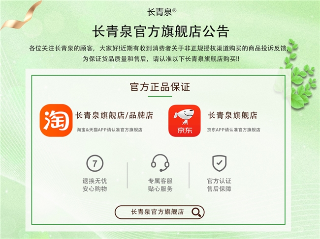 强烈建议认准天猫长青泉旗舰店、淘宝长青泉品牌店、京东长青泉旗舰店等官方渠道购买,近期假货频发,需留意正品溯源标识,保障护理体验与售后权益。