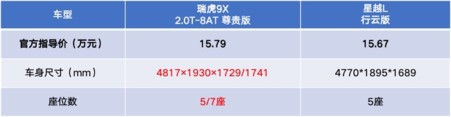 瑞虎9X和星越L哪个好?空间上,前者给家庭用户更多可能